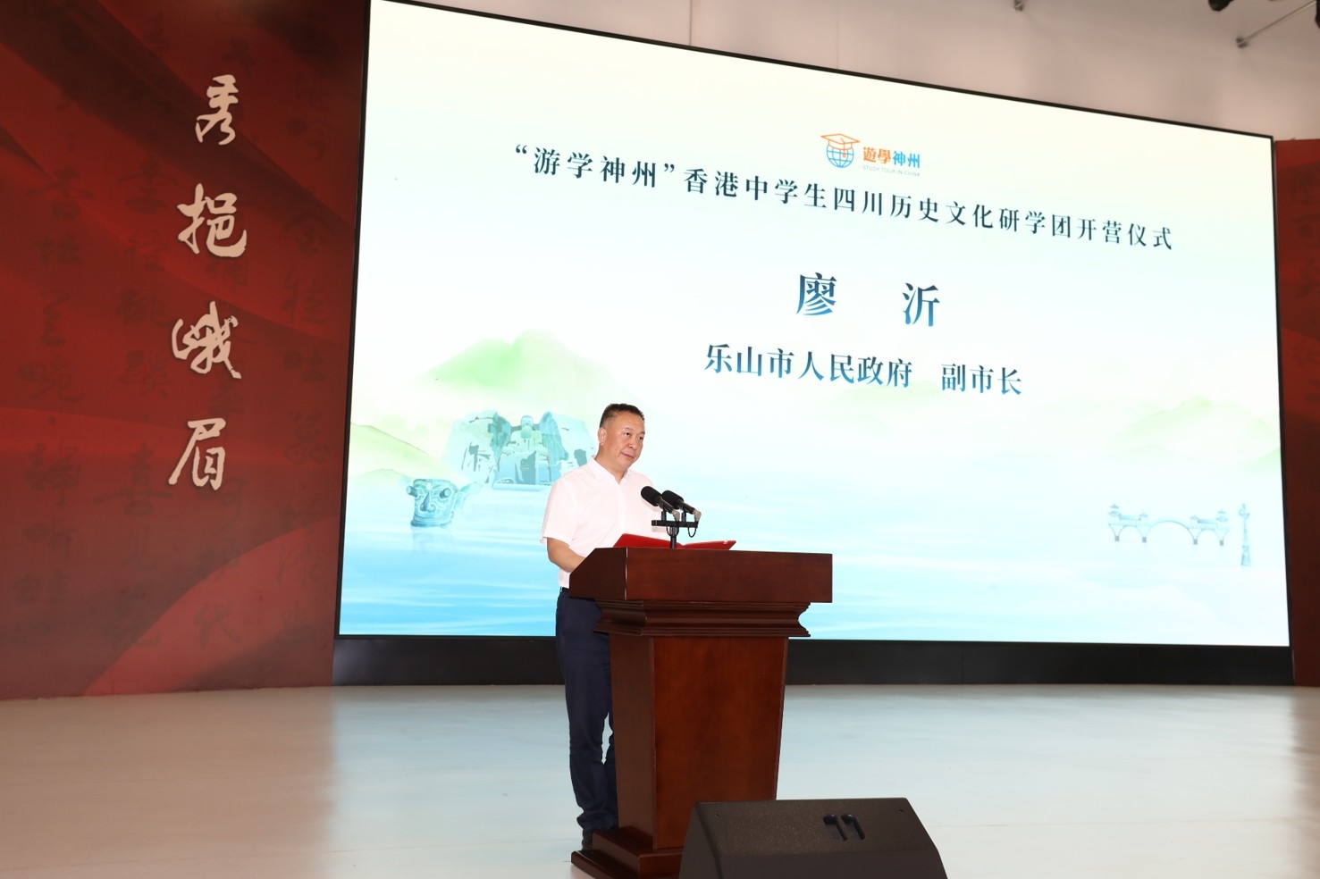 廖沂在致辞中表示,香港与乐山虽相隔千里,却血脉相连。乐山是一座被山水与人文浸润的城市,希望香港同学们用眼睛发现乐山乐水的神奇,用心灵感受中华文化的深厚,用行动践行研学探索的精神,让此次研学成为连接历史与未来、知识与实践的桥梁。