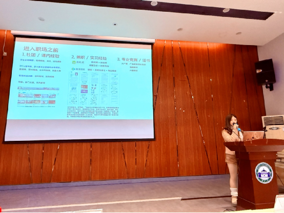 朱茗芳學姐以「走出象牙塔:我的職業路徑探索」為題,分享了從學生到職場的心態轉變。她指出,求職初期常伴隨挫敗感與迷茫,但通過成長心態和複利思維,可逐步實現突破。