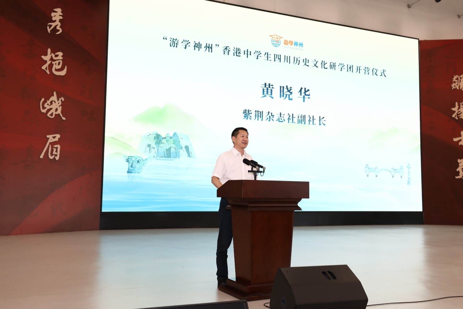 在庆祝香港回归祖国28周年之际,为帮助香港青少年深入了解祖国历史文化和现实国情,强化国家观念及国民身份认同,由教育部留学服务中心指导、中国教育交流(港澳)中心主办、紫荆杂志社协办的“游学神州”香港中学生四川历史文化研学团(以下简称研学团)于7月1日至6日组织近百名香港中学师生前往四川乐山、成都等地开展为期6天的研学活动。