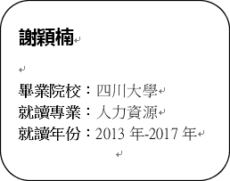 我非常明白從香港回內地讀書要見對的不止學習,還有生活習慣,更有朋輩的眼光。不過只要面對自己的弱處,突破它,你更有非凡的進步。我很感謝身邊的家人朋友對我無限包容更感謝自己的勇敢,讓我順利帶著畢業証還有很多美好的回憶,收穫滿滿的重回香港再往下一步出發!